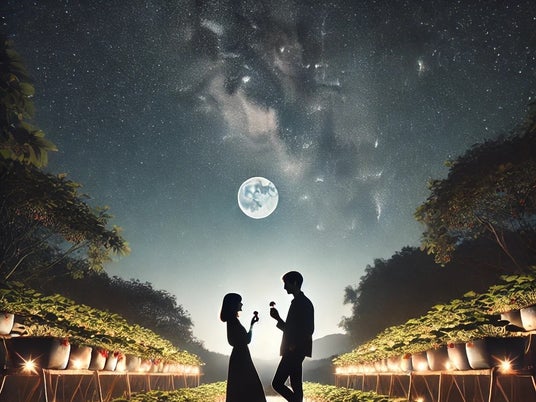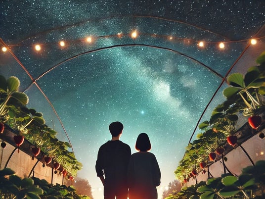 オープン以来カップルでナイトいちご狩りがにぎわう、房総の新しい恋人の聖地「星空いちご園」。イルミネーションが輝くハウスの中は、まるで銀河の星々のなかに迷い込んだような非日常感覚に。都会の喧騒を忘れ、ゆっくりと語り合うひとときをご提供します。甘酸っぱいイチゴが距離を縮め、きっと自然な会話が弾むでしょう。
