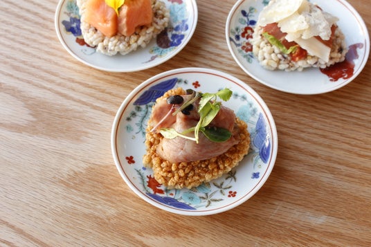 春華堂の姉妹ブランド・五穀屋の「五穀せんべい 山むすび」をベースに作った3つのペアリングフード。