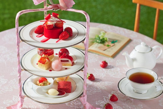真っ赤ないちご尽くしの、季節感あふれるアフタヌーンティー。至高のドリンクセレクションとともに、優雅な春のティータイムをお過ごしください。