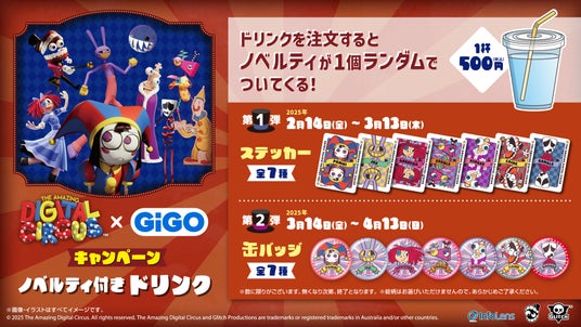 当社」)は、2025年2月14日(金)よりGiGOグループのお店におきまして、人気アニメーション作品『アメイジング デジタル サーカス』とタイアップした「アメイジング デジタル サーカス×GiGOキャンペーン」を開催いたします。