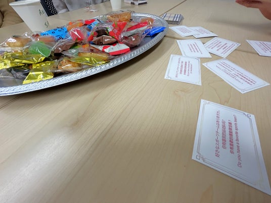 また参加者のみなさんが色々なトピックでお話ができるよう、英語・中国語・日本語で記載された「トピックカード」をご用意しました。トピックカードには「いちばん好きなスポーツを教えてください」「あなたの国の早口言葉を教えてください」「あなたの国では年末をどのように過ごしますか」などが記載され、初対面だと何を話したらよいのか迷ってしまうこともありますが、トピックカードを使っていただいたことで新たな話題を発見し、盛り上がる姿も見受けられました。