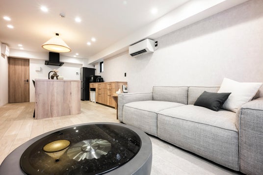 キッチンからソファ、洗濯機まで揃う「GIVE」とは、世界中の人々が我が家のような、居心地の良さを感じる空間を提供する宿泊施設です。また、客室ごとにテーマの異なるインテリアにより、その旅のインスピレーションの提供を心がけております。