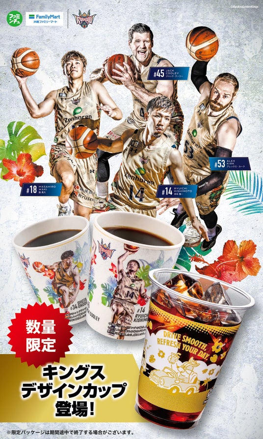 また、沖縄県内のファミリーマートではキングスデザインのファミカフェカップが数量限定にて登場いたします。コラボ商品と合わせてお楽しみください。