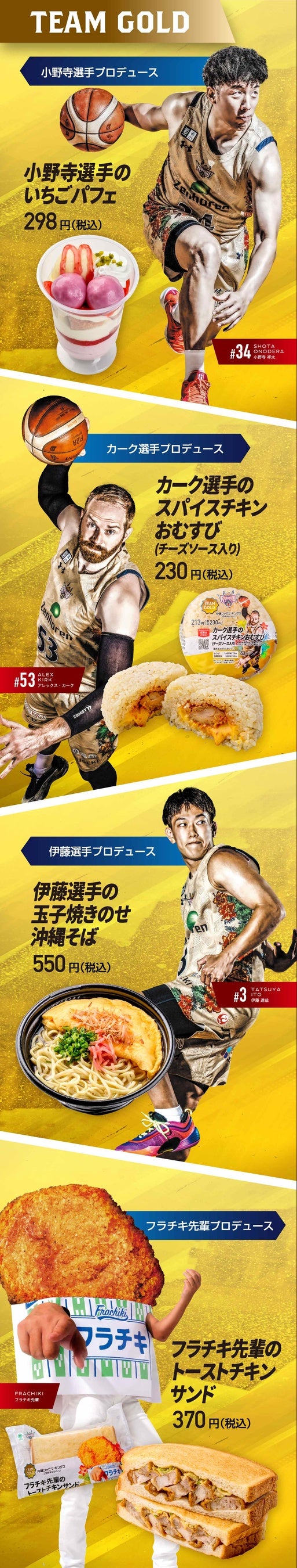琉球ゴールデンキングスのオフィシャルパートナーである株式会社沖縄ファミリーマートとキングスの選手とのコラボ商品を、2月4日(火)より沖縄ファミリーマート全店にて販売いたします。
