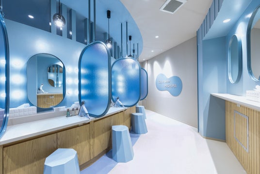 今回のリニューアルでは「モア fun,モア relax」をコンセプトに、三島にゆかりのある要素を随所に取り入れ、クラブハウス内外を全面的に刷新しました。三島市の木に制定されている「イチョウ」や、市の鳥に制定されている「カワセミ」から着想を得た鮮やかな山吹色をメインカラーに採用し、インパクトのある空間を創出。女性パウダールームには湧き水で豊富な「水の都・三島」を表現する水色を使用し、カジュアルな中にも清潔感のある空間を演出しています。