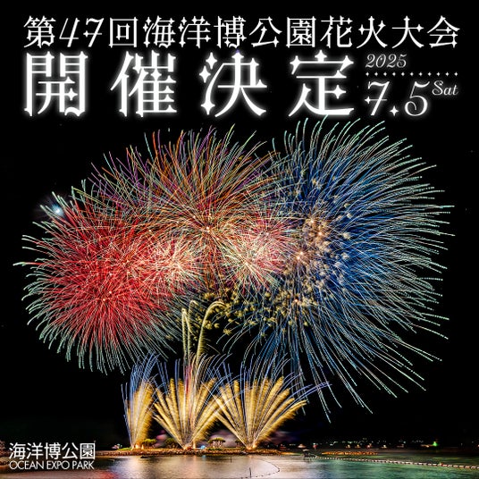 海洋博公園では、「海洋博公園サマーフェスティバル2025」の一部として開催される夏の一大イベント「第47回海洋博公園花火大会」を、令和7年7月5日(土)に開催いたします。