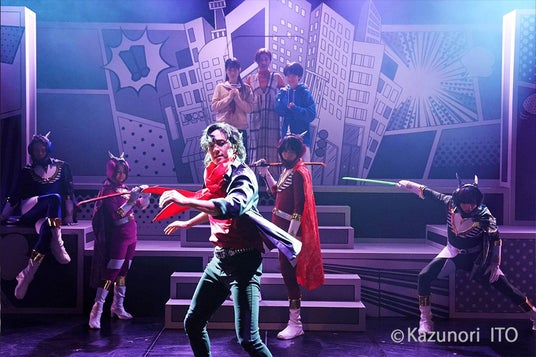 正義と悪の対立を描くだけに、バトルシーンも迫力満点だ。IMO*Tと村瀬による魂をぶつけ合うような立ち回りや、枝 尚紀、亀田結心、赤堀光希、Daniel Tomio Coelho、河野武蔵による正義マンたちの美しきフォーメーションなど、舞台の上を縦横無尽に駆け回る彼らに目を奪われる。また、30-DELUX OSAKAは重厚感ある殺陣、劇団Fierceは流れるような剣さばきと、劇団それぞれの持ち味も存分に楽しめる。