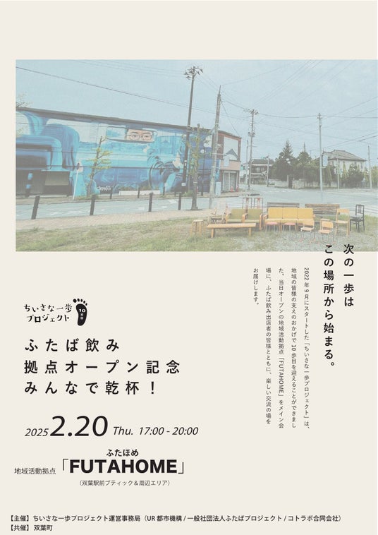UR都市機構は、原子力災害被災地域における復興まちづくり支援を行っており、双葉町との「双葉町の復興まちづくり推進に関する連携協力協定書」(令和4年9月6日付)に基づき、地域活動の担い手不足や地域コミュニティの希薄化といった地域課題解決に向けて取り組んでいます。コトラボ合同会社、一般社団法人ふたばプロジェクトと共同して「ちいさな一歩プロジェクト」を通して地域の賑わいづくりや交流促進、地域プレイヤーの発掘・関係づくり、まちづくり機運の醸成等を進めてまいりました。