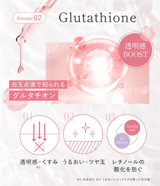 さらに、美容医療発想の「エクソソームシカ」*7「グルタチオン」*8で、肌を整え、透明感*6をブースト。ドラマティックな肌変化を叶えます。