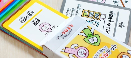 いざという時に役に立つ、AEDの使いかたや緊急用トイレの作りかた、簡易マスクの作りかたなど「防災機器」「インフラ」「衛生(感染症対策)」「食事」のジャンルから合計16 種類の防災の知識をカードゲームで遊びながら身に着けることができます。