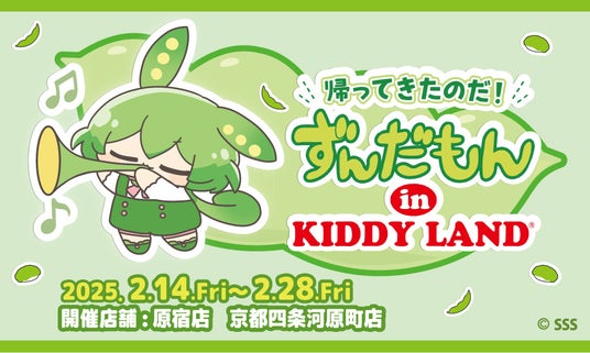 P&J株式会社(代表取締役:廣滝 貴徳 東京都台東区)は、2025年2月14日(金)から2月28日(金)まで、キデイランド原宿店1階店頭K-spotおよび京都四条河原町店にて【帰ってきたのだ!ずんだもんin KIDDY LAND】を開催いたします。昨年、原宿店および大阪梅田店で開催された【ずんだもんin KIDDY LAND】は大好評を博し、多くのご来場をいただきました。その成功を受け、今年は『ずんだもん』のさらなる飛躍を目指し、この度、原宿店と京都四条河原町店での開催が決定いたしました。