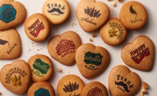 上記のクッキーに、メッセージや企業ロゴなどお好みのデザインのプリントを承ります。美味しさとブランド力を兼ね備えたオリジナルクッキーは、レセプションや祝いの場にぴったりです。