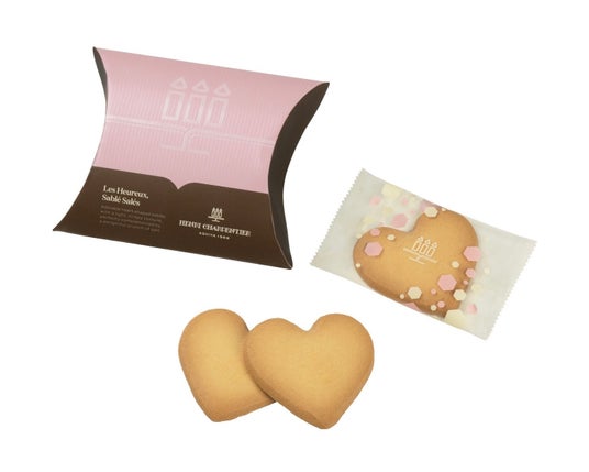 『しあわせサブレ』は、手にしただけで幸せな気持ちになれる、ハート型のサブレです。発酵バターが香る深い味わいに、アメリカ産「ロックソルト」の塩気とカリッとした食感が絶妙なアクセントとなっています。