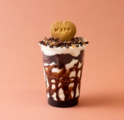 毎年人気のタブレットヌガーを連想させる、甘さとビターさが絶妙なヌガーとカカオニブをたっぷりふりかけ、チョコソースや生クリーム、そしてお店で焼いたブラウニーもたくさん入った贅沢なアイスパフェに仕上がっています。