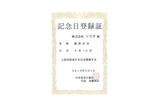 2月10日(2:ブタ 10:ドン)の語呂の良さに加え、体温維持効果やスタミナ維持効果が高い豚肉を使った「豚丼」を食べて寒い2月に元気に乗り切ろう!本場の美味しい十勝豚丼を全国にもっともっと認知してほしい!という思いから、株式会社ソラチが2010年に日本記念日協会に「豚丼の日」を申請、登録しました。