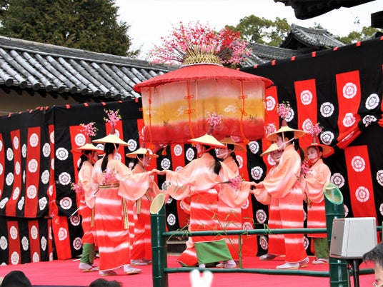 3月23日に公開を終える梅園も「はねず踊り」開催日は特別に開園。少女らの舞とともに観梅をお楽しみいただけます。