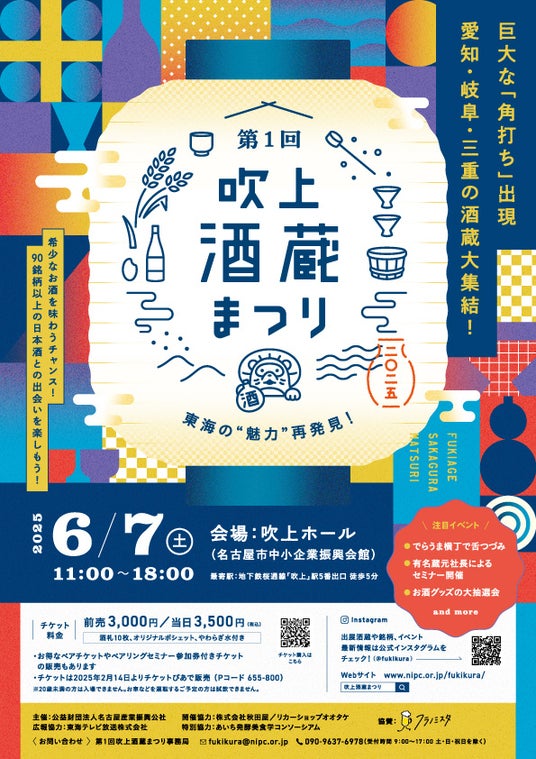 公益財団法人名古屋産業振興公社(名古屋市千種区吹上2-6-3、理事長:下山浩司)は、2025年6月7日(土)に吹上ホールにおいて「第1回吹上酒蔵まつり」を開催します。