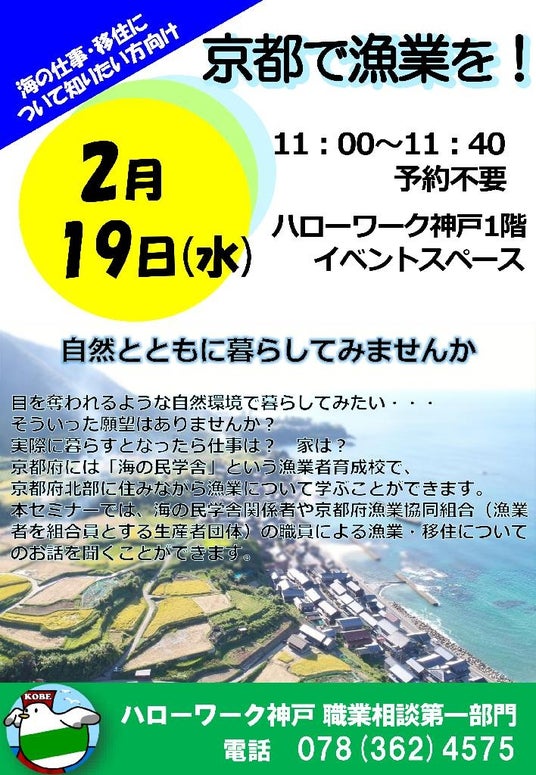 ■この度、近畿圏では2か所しかない農林漁業への就業に向けた専門的な支援を行う窓口を設置されている神戸ハローワークにおいて説明会を初開催します。