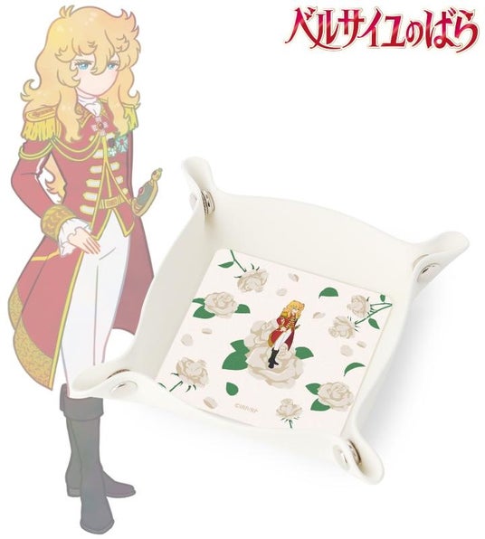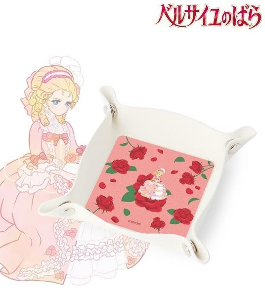 オスカル、マリー・アントワネットのイラストをボタニカルデザインに落とし込んで繊細なタッチで新たに描き起こし、PUレザーマルチトレーに仕上げました。