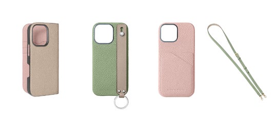 左からダイアリーケース、ハンドル付き バックカバーケース、バックカバーケース、アジャスタブル ショルダー ストラップ