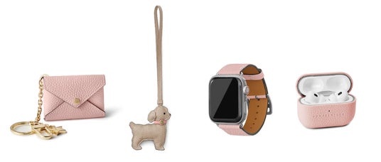 左からスター チェーン キーホルダー、アニマルチャーム (ドッグ)、Apple Watch レザーバンド、エアポッズプロ 2 ケース