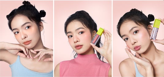 そこでメイベリン ニューヨークは、まるで火照った*²ような血色感と、うるおいのあるツヤ感を一本で実現する、史上初*¹のリキッドチーク「GLOKISSER」を開発しました。また、同時に発売される偏光ラメがぎっしり配合されたハイライターは、単体でも、チークと組み合わせて使っても、透明感のあるツヤ肌を演出できます。