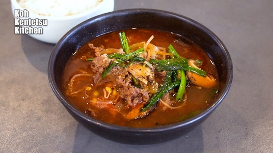 今回コウケンテツさんに作っていただいたユッケジャンは、ご飯との相性が抜群で思わずご飯をおかわりしたくなる一品。時間をかけて作ったような本格的な味わいに仕上がっています。ほどよい辛さで体も心も温まります。