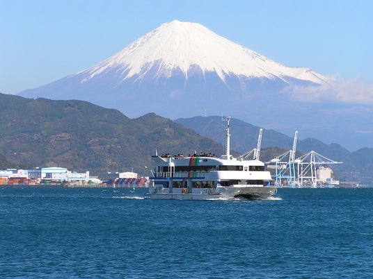 晴れた日には、海と青空と雄大な富士山が描き出す絶景をたっぷり堪能できるクルーズ。海の上から港の風景とともに世界文化遺産の富士山の姿が眺められるのは、清水港ならではの景色です。空気が澄んでいる秋から春にかけて、雪化粧をした富士山と港の風景は格別。特に春先の午前中は、たっぷりと雪をかぶった富士山が見える確率がアップします。