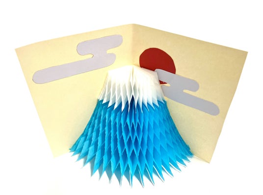 富士山をモチーフにしたポップアップカードを作成。無料で申込不要、15~20分程度で簡単に作成できます。どなたでも体験可能なため、お子様と一緒に親子で楽しめます。