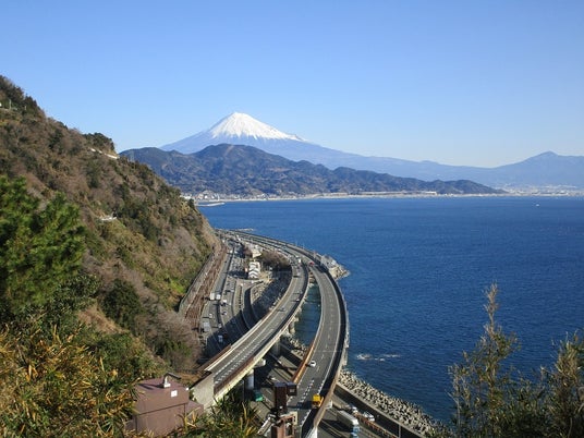 歌川広重の「東海道五十三次之内」にも描かれている薩埵峠。展望台からは、四季折々の富士山、伊豆半島、駿河湾が一望できます。また、「薩埵峠富士山ライブカメラ」を設置して配信しているので、遠くにいる方も、移りゆく富士山の動画をいつでも見ることができます。