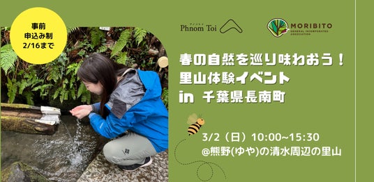 森林・里山の新たな価値を作り届けることをミッションに自社ブランドPhnom Toiの運営や企業の環境経営支援を行う株式会社プノントイ(所在地:東京都品川区 代表取締役社長:吉成絵里香)は、千葉県中房総地区で森林整備・間伐に取り組む一般社団法人もりびとと共催で、2025年3月2日に「春の自然を巡り味わおう!里山体験イベント in 千葉県長南町」を開催します。