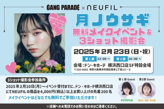 2025年2月23日(日・祝)にドン・キホーテ横浜西口店にて、人気アイドルグループGANG PARADE・月ノウサギによる無料メイクイベント&ゲストメンバーとの3ショット撮影会を開催!