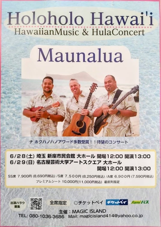 『Holoholo Hawai'i Hawaiianmusic & Hulaconcert <Maunalua>』を2025年6月28日(土)、29日(日)に開催決定!「チケットペイ」にて販売開始!
