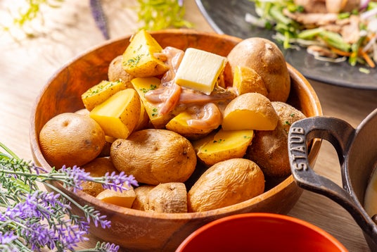 北海道産”インカのめざめ”のじゃがバター 塩辛添え北海道産のインカのめざめを使った、甘み豊かなじゃがバター。アクセントに塩辛をのせて、まろやかなバターの味と絶妙に絡み合う一品に仕上げました。