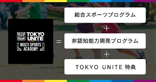 本アカデミーは、TOKYO UNITEがミッションとして掲げる「子どもたちがスポーツをできる環境、機会を広げる」ことの取り組みの一環として、1年間で7種目以上のスポーツが体験できる総合マルチスポーツアカデミーです。子どもたちは、野球、サッカー、バスケットボール、ラグビー等、7種目以上(1~2ヶ月毎に変更)のプログラムを受講し、運動能力の向上を目指していきます。さらに、複数人でチームを作り、課題にチャレンジをしていくプロジェクトラーニング型学習を通じて、21世紀に最も必要なスキルといわれている非認知能力開発プログラムも実施いたします。また、本アカデミーの特典として、TOKYO UNITE参画チームの試合観戦特別ツアーや参画チームのアカデミーコーチ・選手による特別レッスンを開催する予定です。