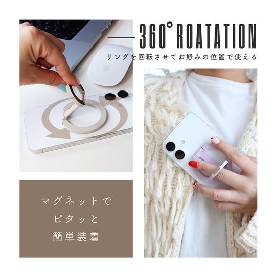 MagSafe対応 マグネット式で取り外しも簡単なスマホリング。