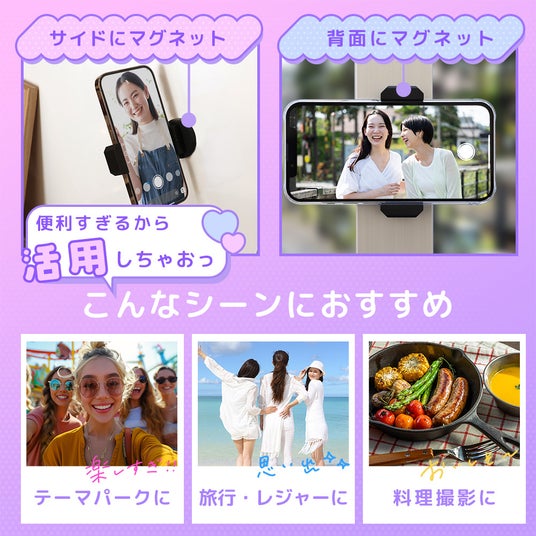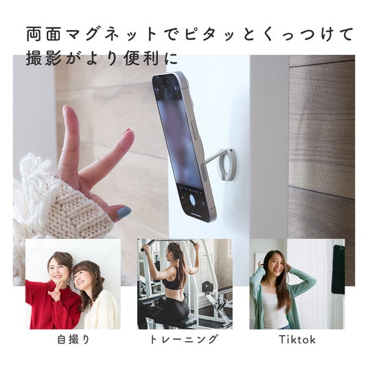 両面マグネットなので自撮りなどの撮影をより便利にしてくれます。
