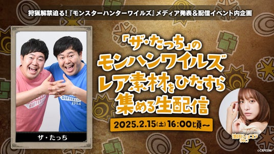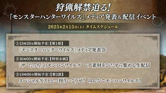 ライブ配信イベント「狩猟解禁迫る!『モンスターハンターワイルズ』メディア発表&配信イベント」を2025年2月15日(土)13:30より放送致します。