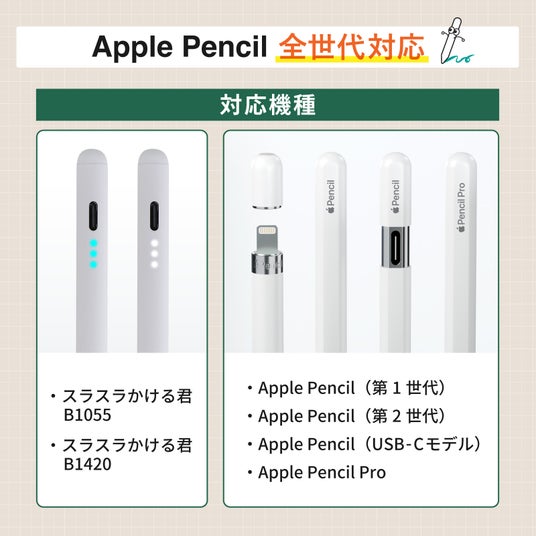 Apple Pencilにも対応! - 第1世代 / 第2世代 / USB-C / Proで使用可能