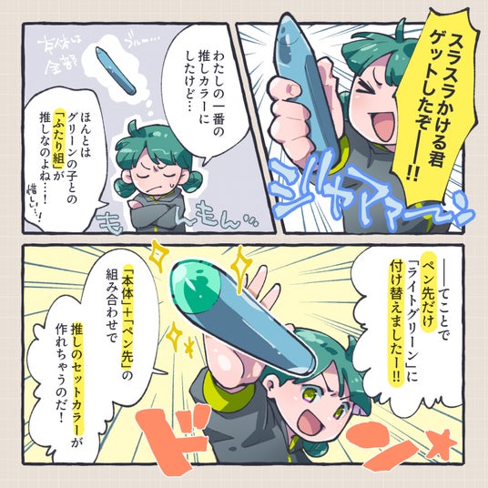 本体とペン先の色を自由に組み合わせることで、「推しカプ」や「概念カラー」を表現し、推しの二人組をもっと身近に感じられます。
