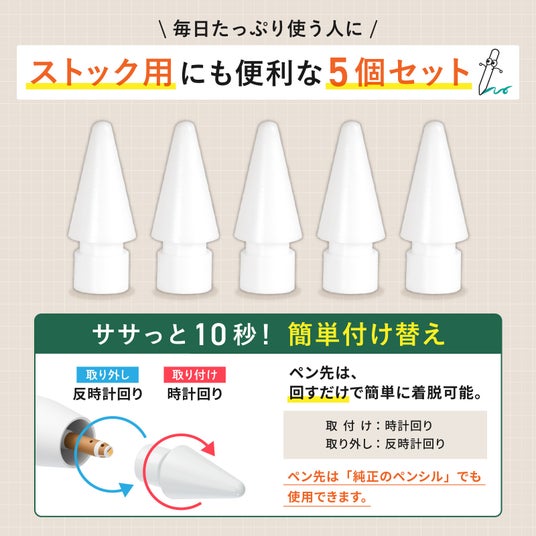 さらに、Apple Pencil(第1世代 / 第2世代 / USB-C / Pro)にも対応しており、Apple Pencilのペン先としても使用可能!