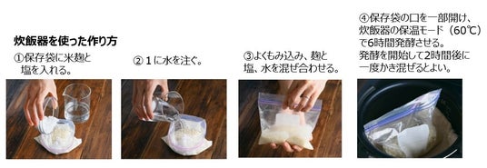 ・米のでんぷん質が糖化されて甘みを含むまろやかな味わいに。塩麹だけで味が決まります。