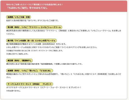 旬のいちごを使ったスイーツと千葉北総エリアの名産品を楽しむ「ちばのいちご紀行」号