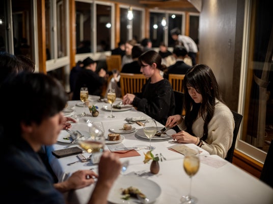 幻想的な装いとなった星空ペンションコメットメインダイニング。シェフたちの共演が眼前で楽しめるシェフズテーブルに視線が集まった。