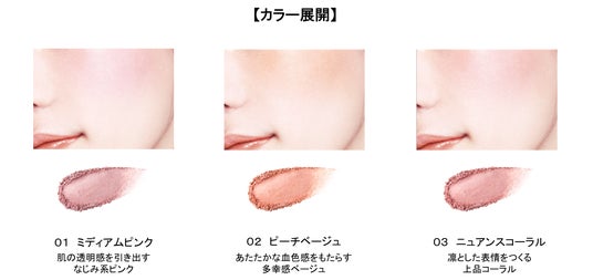 透け感のある発色で肌になじみ、テクニックいらずでやわらかな血色感をプラスします。