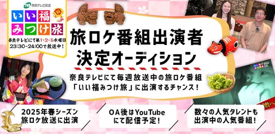 本オーディションでは、奈良テレビで放送中の旅番組「いい福みつけ旅」2025年春シーズン放送回の出演者を選出します。