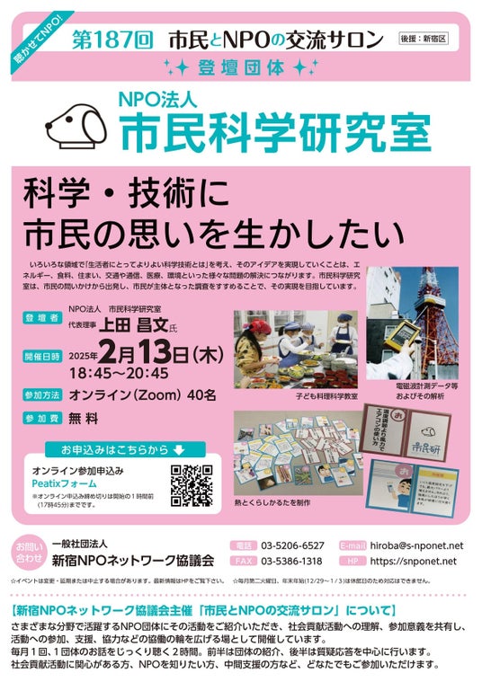 『第187回 市民とNPOの交流サロン(登壇団体:NPO法人市民科学研究室)』を開催します!