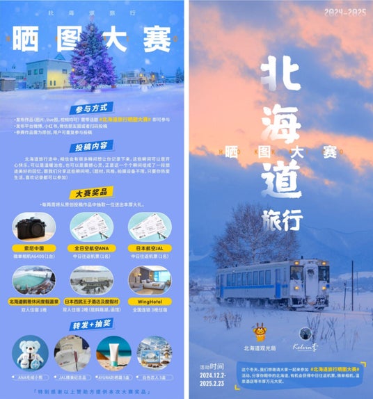 そのような情勢の中、訪日中国人旅行者にとって人気の旅行先のひとつである北海道の魅力を、より広く伝えることを目的とし、本企画では、フォロワー約462万人の在日中国人写真家kelvin李氏および、kelvin李氏が運営する写真愛好家コミュニティ(登録者数約47万人)