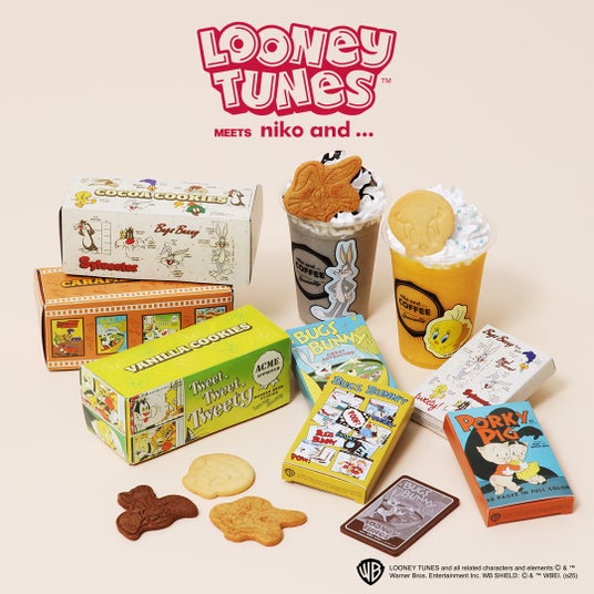 「niko and ... COFFEE」併設店舗では、トゥイーティー、バッグス・バニーをイメージしたコラボスムージーを「niko and ...」の一部店舗では、トゥイーティー、バッグス・バニー、シルベスターのキャラクターが描かれたダイカットクッキーと、本コラボのビンテージアートをデザインに落とし込んだチョコレートを販売します。