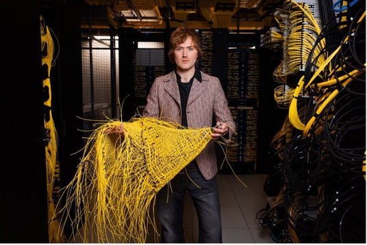 レイナーと彼のチームは、光ファイバーケーブルや金属ワッシャー、ボルトなど、データセンターに実際に使われている素材を組み合わせ、この作品を完成させました。